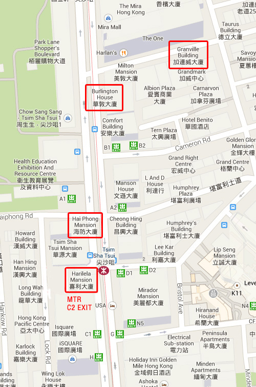 Harilela Branch:From A21 'Tsim Sha Tsiu Station' walk forward and cross the Nathan Road
